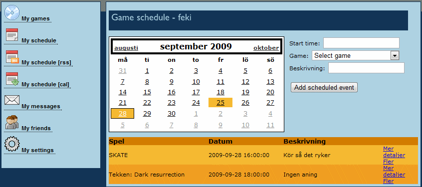 Grundprincipen var ganska sexig. En central speldatabas. Spelare registrerar sig, markerar de spel som ägs samt vilka man är sugen på att spela. Spelsessioner kan skapas, markeras som privata (“friends only”) eller globala och sedan sökas upp av sugna spelare. Och allt publiceras som rss eller ical-format så det kan konsumeras av rss-läsare eller webb-kalendrar. (Nej, ingenting integrerat med PSN naturligtvis - det användaren fick var en kalenderpåminnelse om att starta sin konsoll och spelet i sig…)